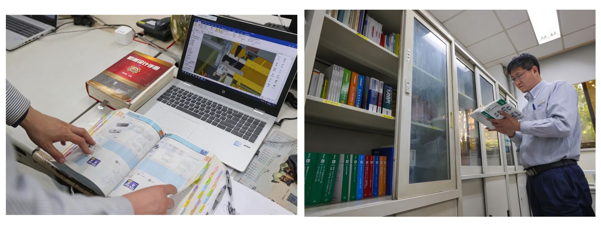 转角的精彩人生从此开始。张恩良学长兢兢业业的在公司工作了25年,起初,他在各个部门轮岗。他的同事们大多想进环境干净、工作较轻松的组装部门,但他一心想要留在加工部门。“加工部门有数控机床、机械手等自动化进口设备,能学到很多技术,所以我特想在这个部门干。”于是,张恩良学长在加工部门轮岗时十分上心,即便只是上下料的简单工作,他依然获得了产线师傅的高度认可。“师傅说我有眼力见儿,不仅自己的活儿干了,这一片其他同事的活儿,能干的我都给干了。”就这样,他如愿留在了加工部门,但更艰巨的挑战也随之而来。“机械设计方面我上手较快,但电气控制这块儿真的不了解,隔行如隔山,真的要从零开始学。”当时,公司来了几位日本工程师。张恩良学长心想,一定要抓住这个机会,多学习一些技术。不过,交流问题成了摆在他面前的一座大山。于是,每个周末,他都会乘车到市里学习日语。“那时候的北京经开区不像现在这样便利,公司周边都是农田,到市里每天只在固定时间有车,一天三班,赶不上就错过了。”即便在这样的条件下,张恩良从未缺席过一节日语课。如今,张恩良不仅能用日语熟练地沟通,厚厚的日语工具书上也尽是他做的重点标记。功夫不负有心人。在新世纪第一届数控技能大赛中,他一举荣获数控加工一等奖。