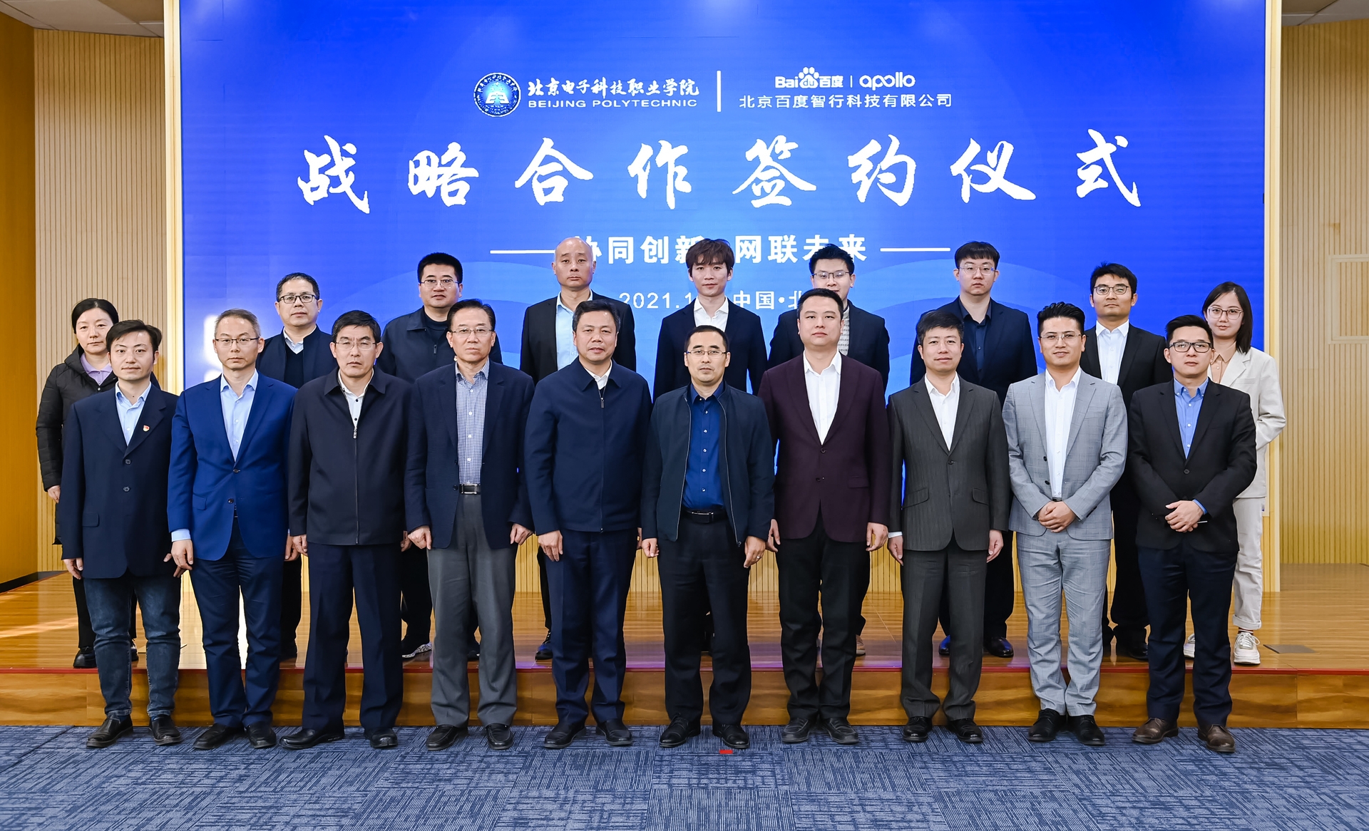 在与会领导与嘉宾的共同见证下,北京电子科技职业学院副院长朱运利、百度智能交通业务部北京区域总经理韦志勇分别代表校企双方签署了战略合作协议。