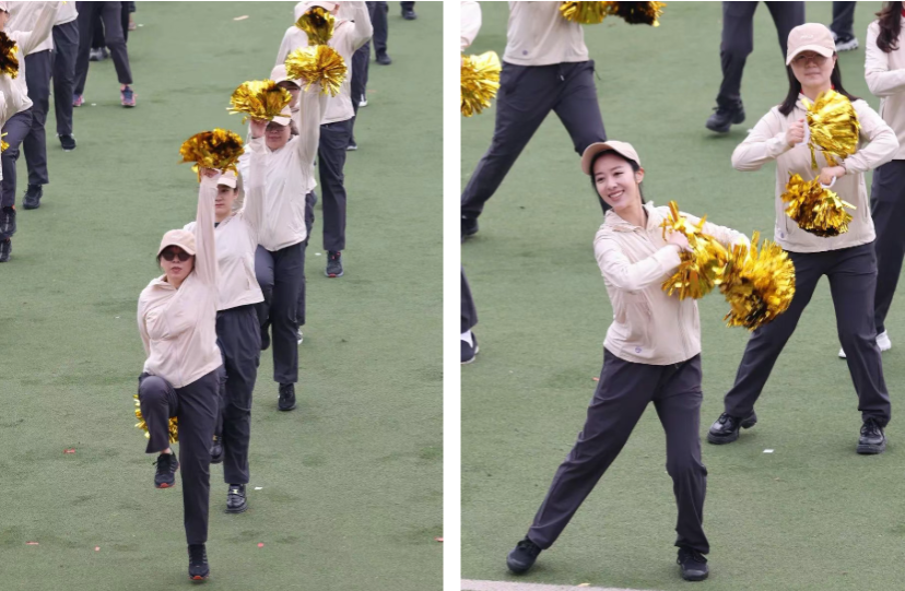 More than 200 faculty members danced rhythmic gymnastics to the cheerful music. They were full of energy, with their movements stretching powerfully. The smiling faces and vigorous postures in the sun set off each other, turning the campus into an ocean of vitality.