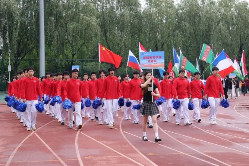 Teachers and student athletes from various colleges and sub - unions, dressed in clothing that highlighted their professional characteristics, passed the rostrum in turn with high - spirited postures.
